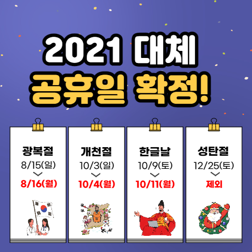 2021 대체공휴일 전면확대법 제정안이 국회 행정안전위원회 법안심사소위를 통과가 되었습니다.
